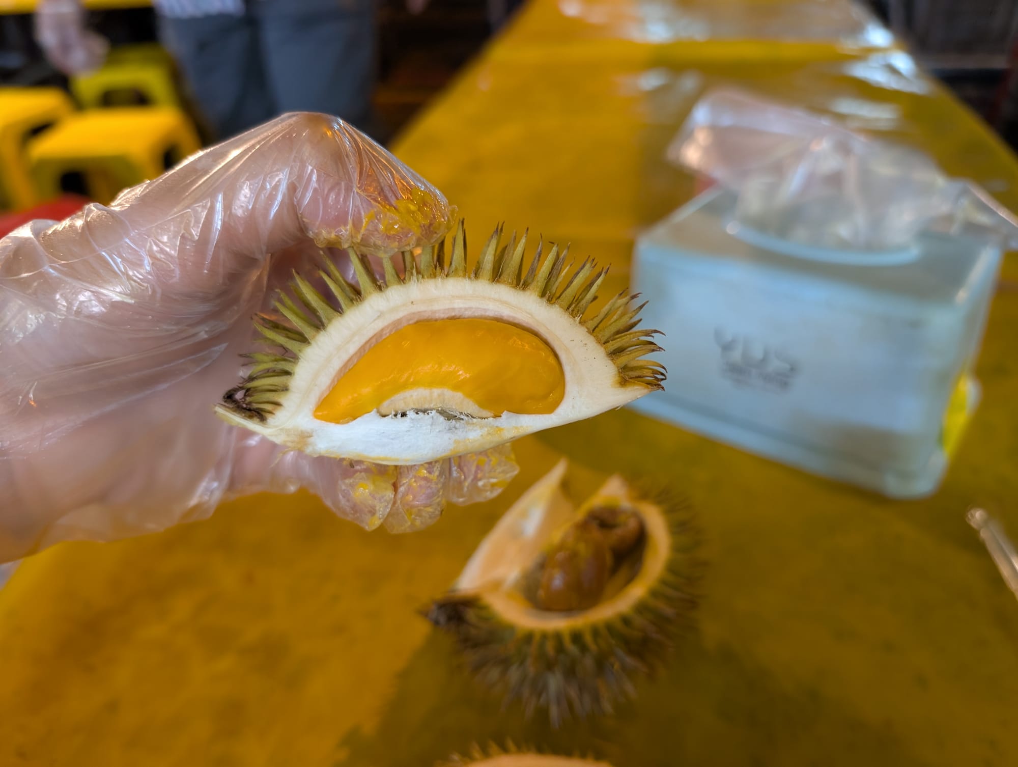 やはりコタキナバルといえば野生種、そして味も非常に好みであるDurio graveolensのオレンジ色をいただくことに。