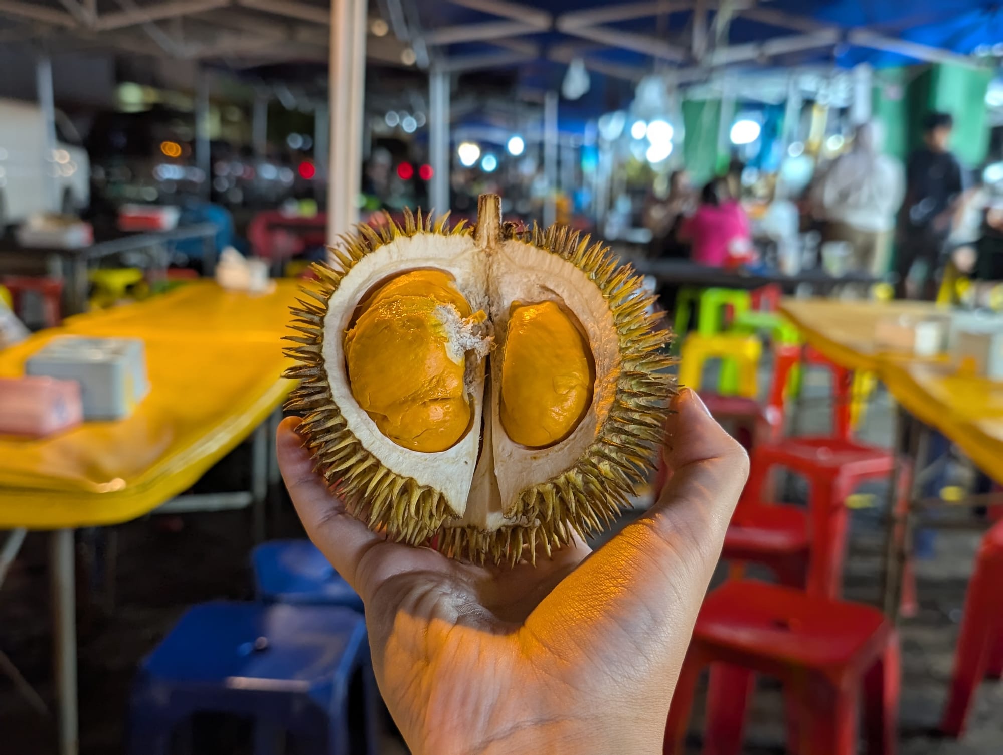 夜がふけるつれて少しづつ客足の減るドリアンナイトマーケットで、2025年最後に口にするドリアンを探しに彷徨う。