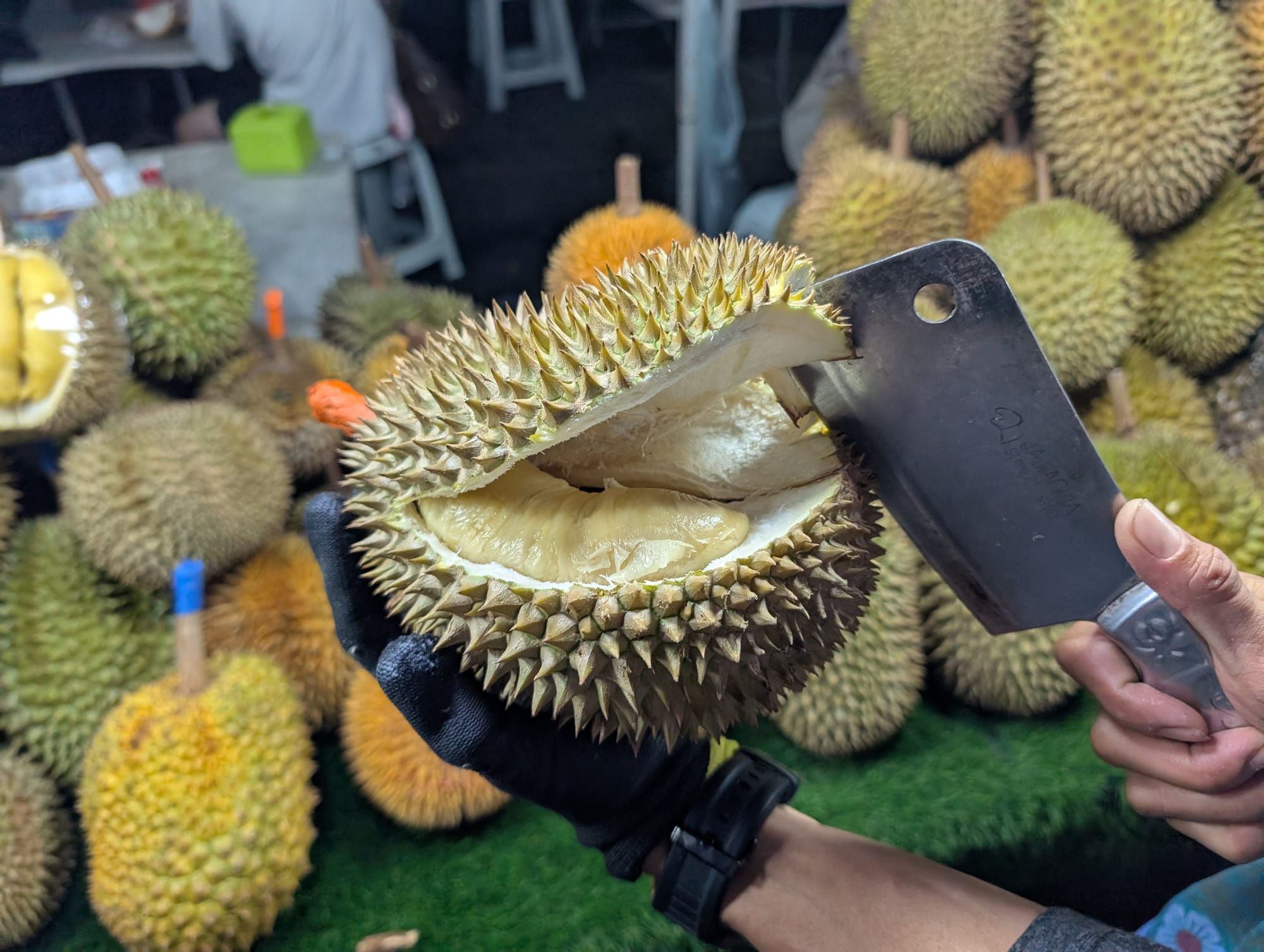 コタキナバルのドリアンナイトマーケットは23時を超えても開いており、年越しギリギリまでドリアンを食べ続けられる素晴らしい場所である。
