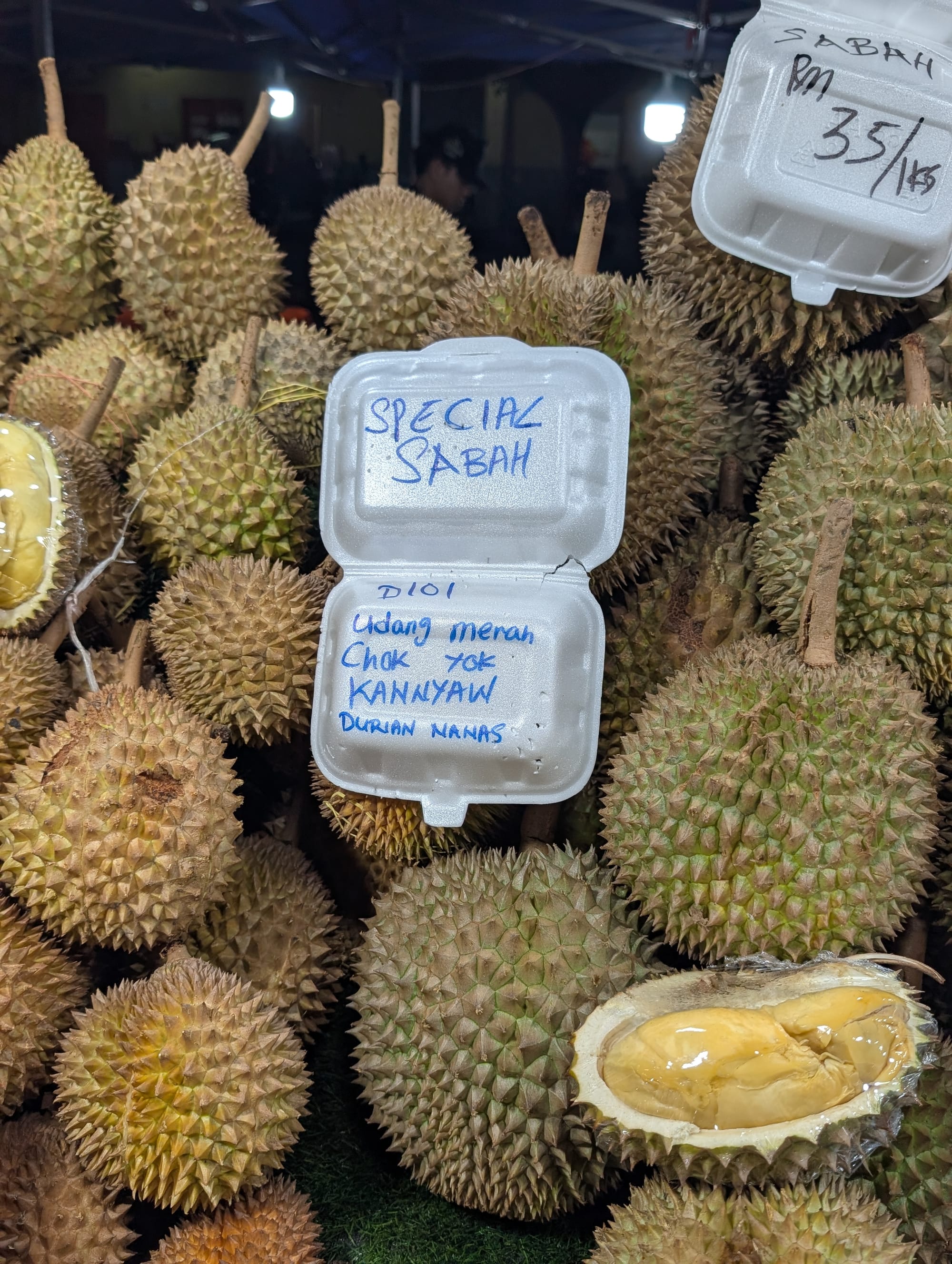 以前にもコタキナバルではD7、D8など古い品種と遭遇していたが、こちらもかなり古株なドリアンだ。