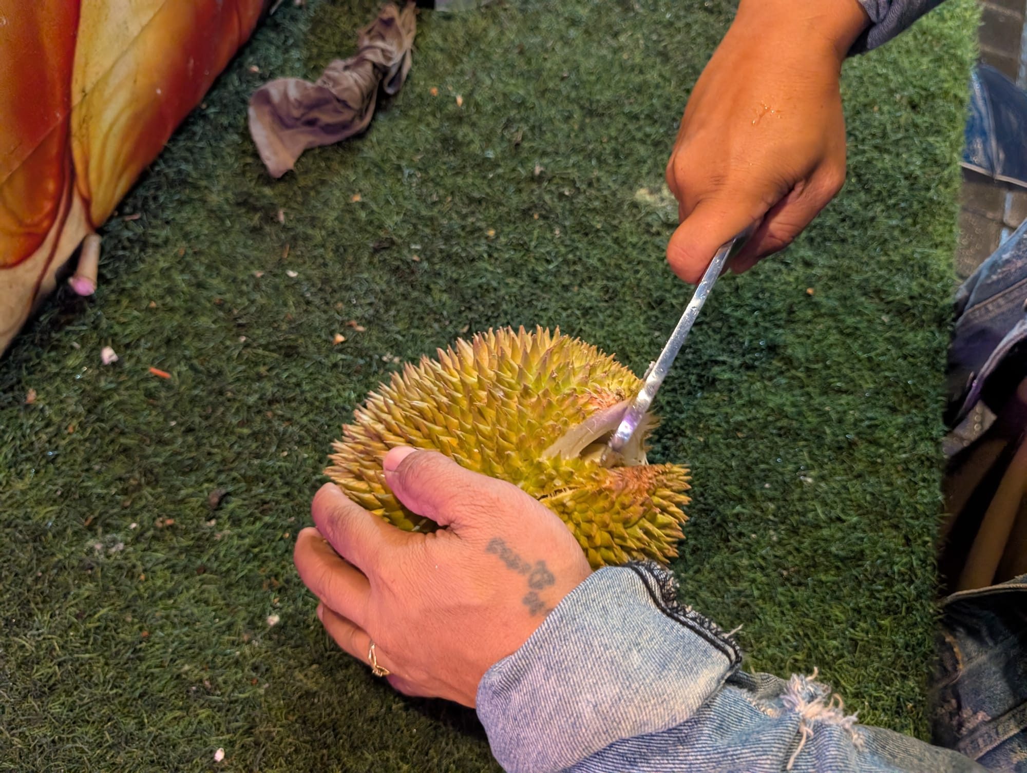 100k IDR/1玉で小ぶりなDurian Mentegaを購入。
