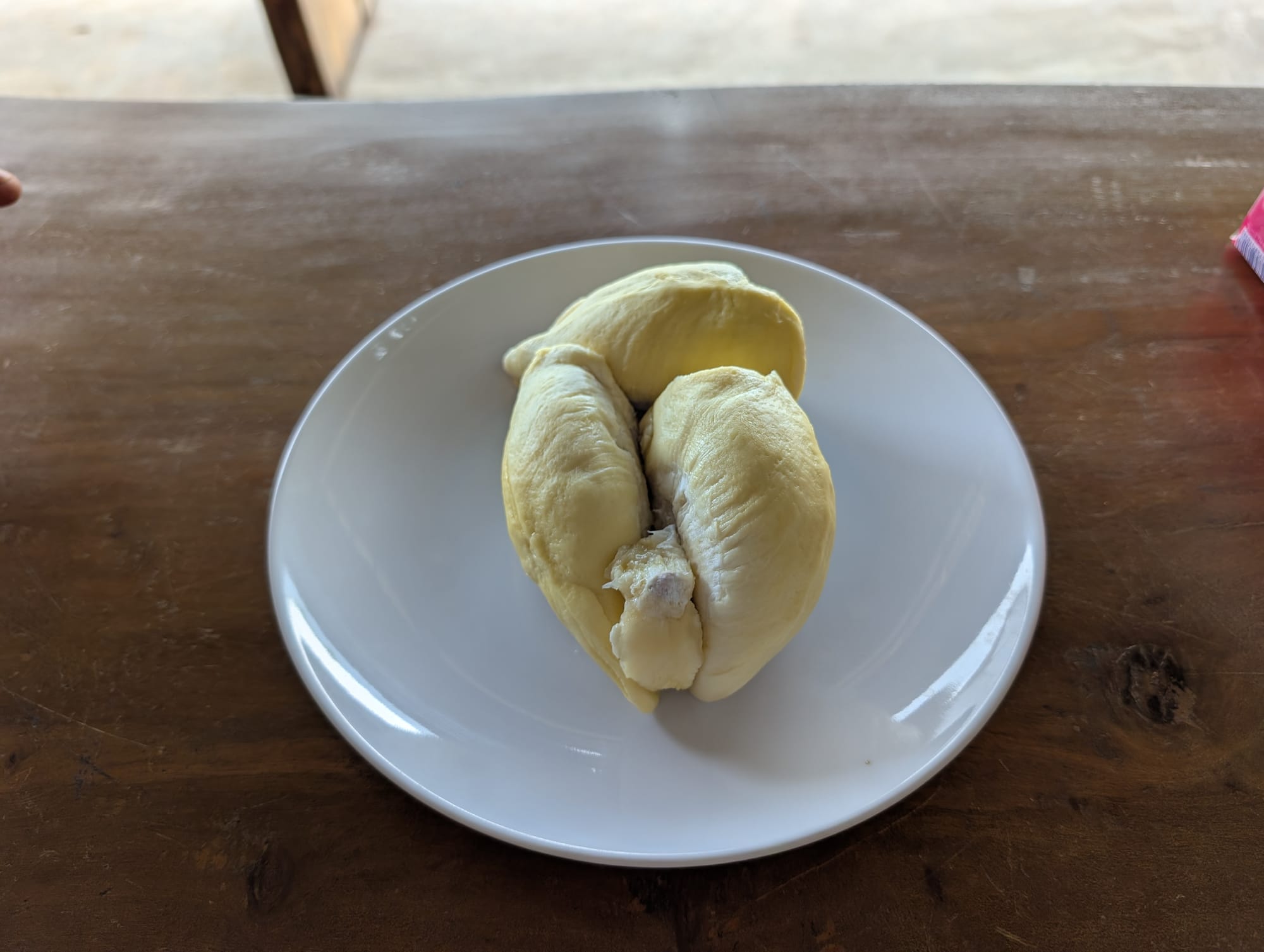 皿に乗ったドリアン、なかなか見慣れない光景である。