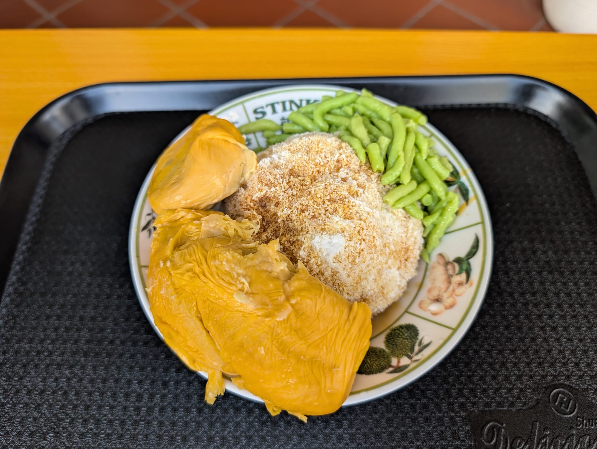 一番良いのは1玉丸ごと買うことだが、ドリアン以外の現地グルメをたくさん詰め込んだお腹には余裕がなかった為、パック入りの猫山王 18SGDを購入。