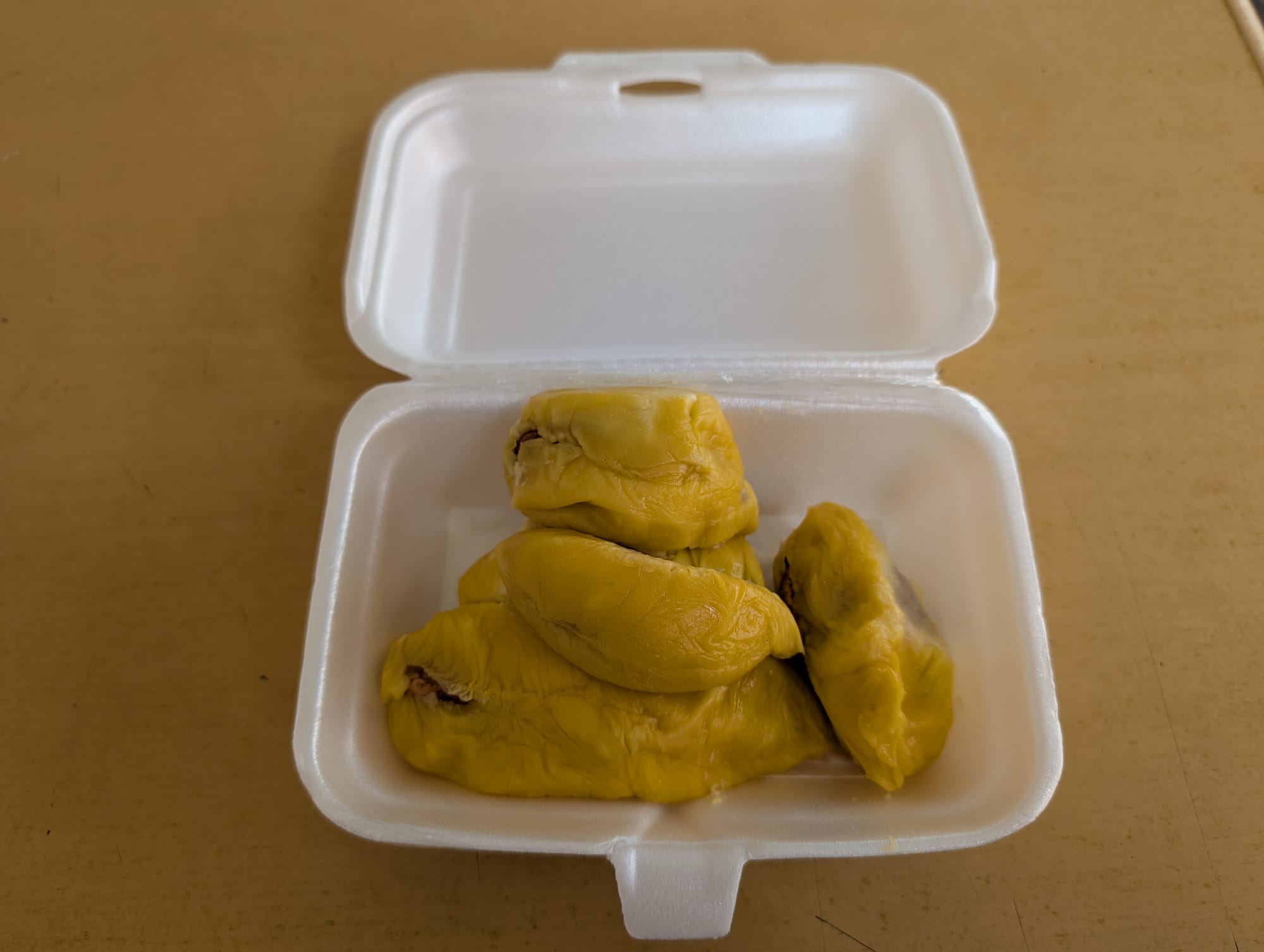 ブラックパールとコーヒードリアンは今回のドリアンツアー前半にジョホールバルで食べているが、ペナンやKLでは見かけない品種だ。