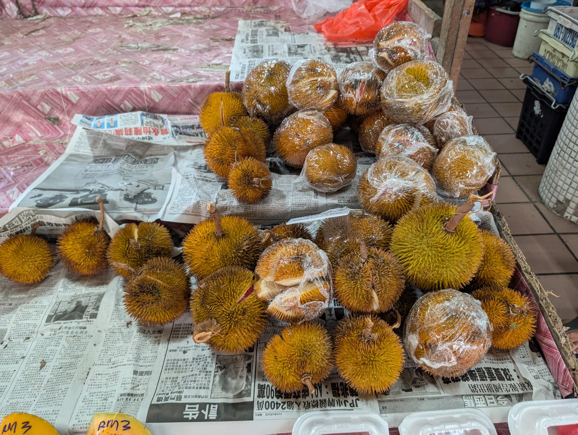 市街地でドリアンが売っている場所は全て把握済みのため、この時期にどんな品種が売られているかチェックして練り歩く。