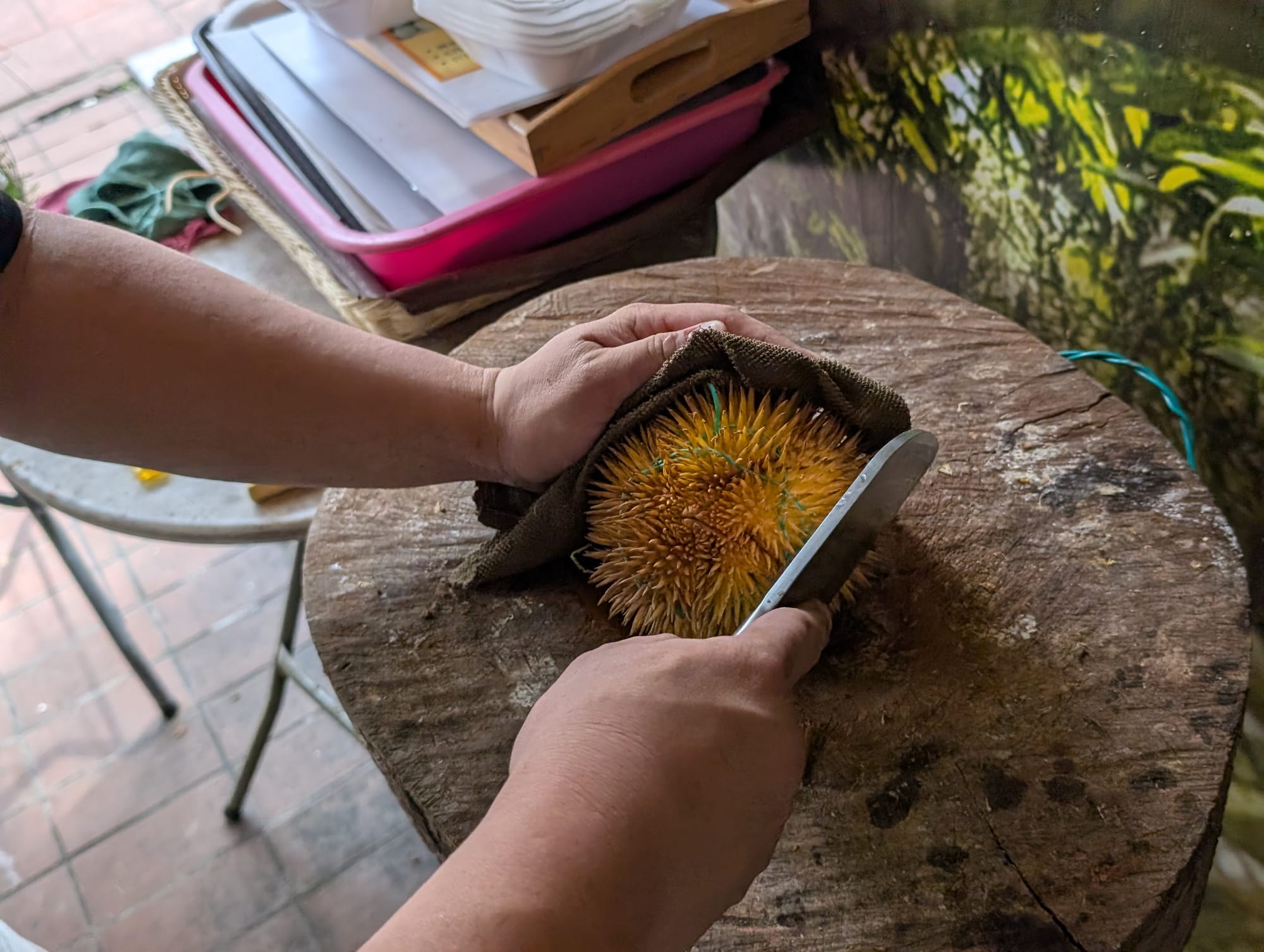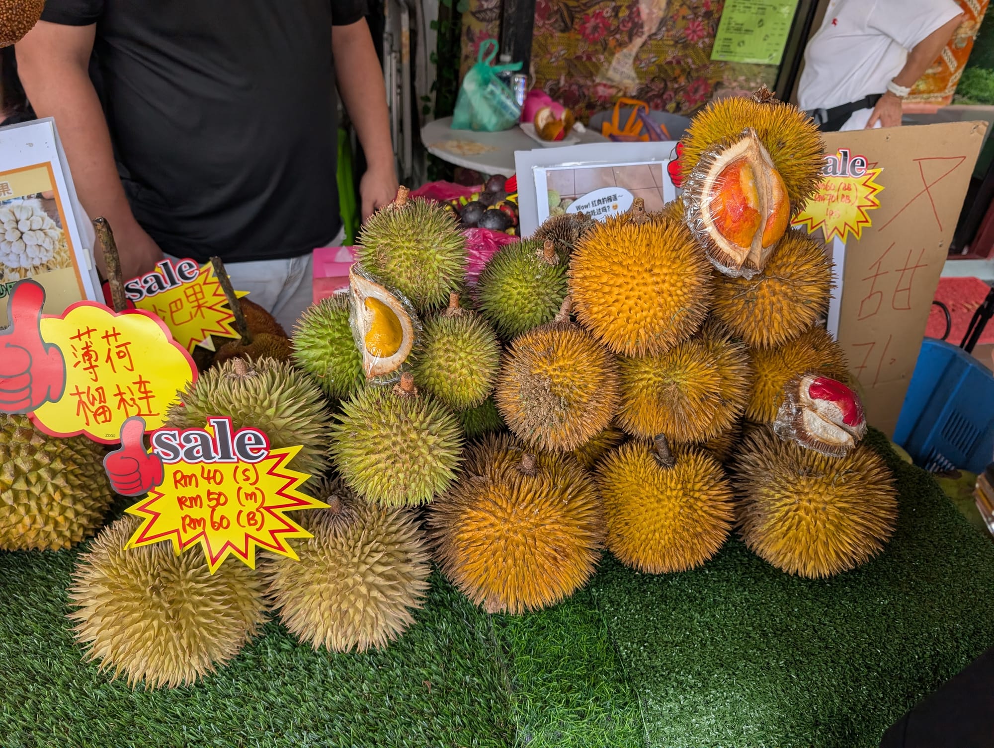 コタキナバルではナイトマーケット以外で昼から開いているドリアン店は多くない。この日は、野生種ドリアンを扱っていたこちらのお店でドリアンを食べることにした。