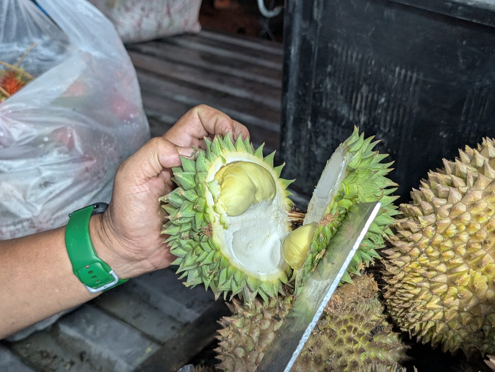 ボルネオ島で決まった時期にしか流通しない野生種ドリアン達、ここで買わない手はない。