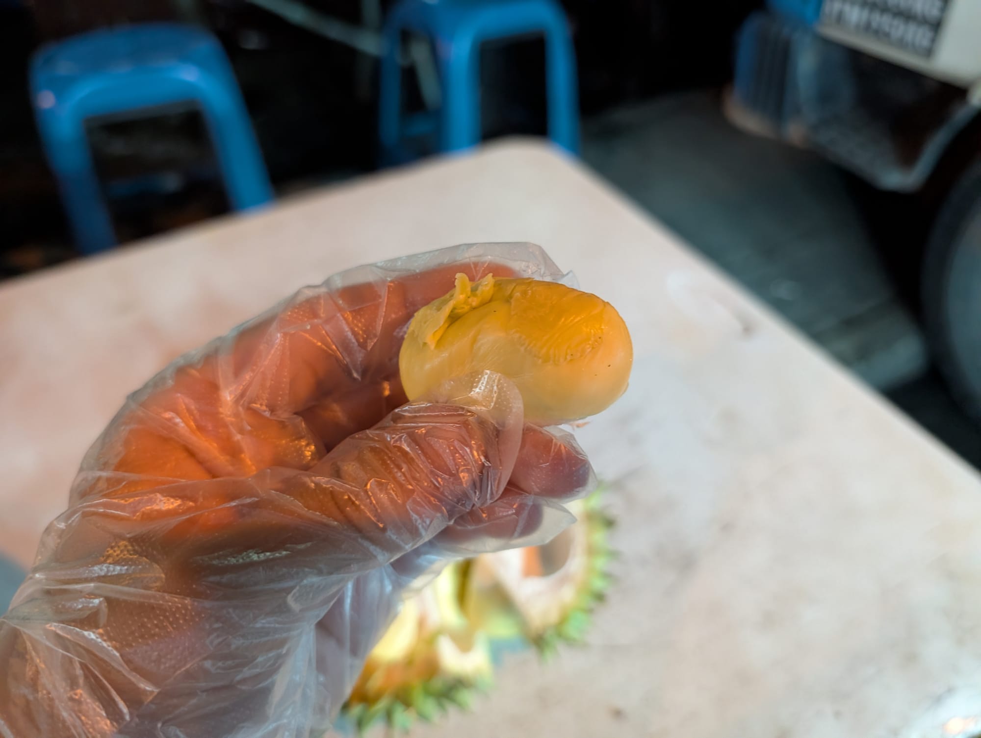 面白い、これはもはや目を瞑って食べさせられたらドリアンだとは認識できないだろう。
