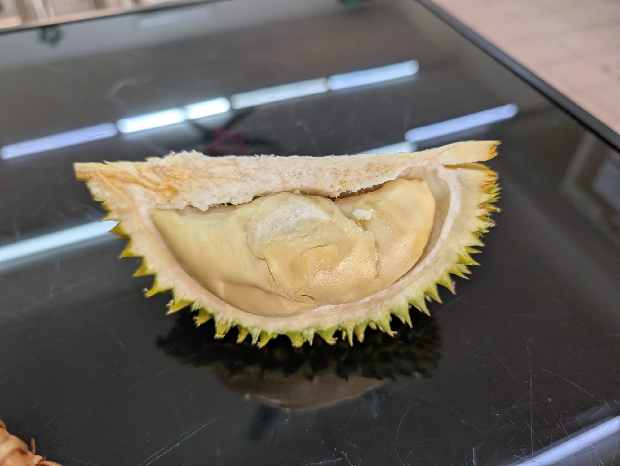 味はコタキナバルで食べた黄色いDurio graveolensと思われるドリアンとそっくりだ。