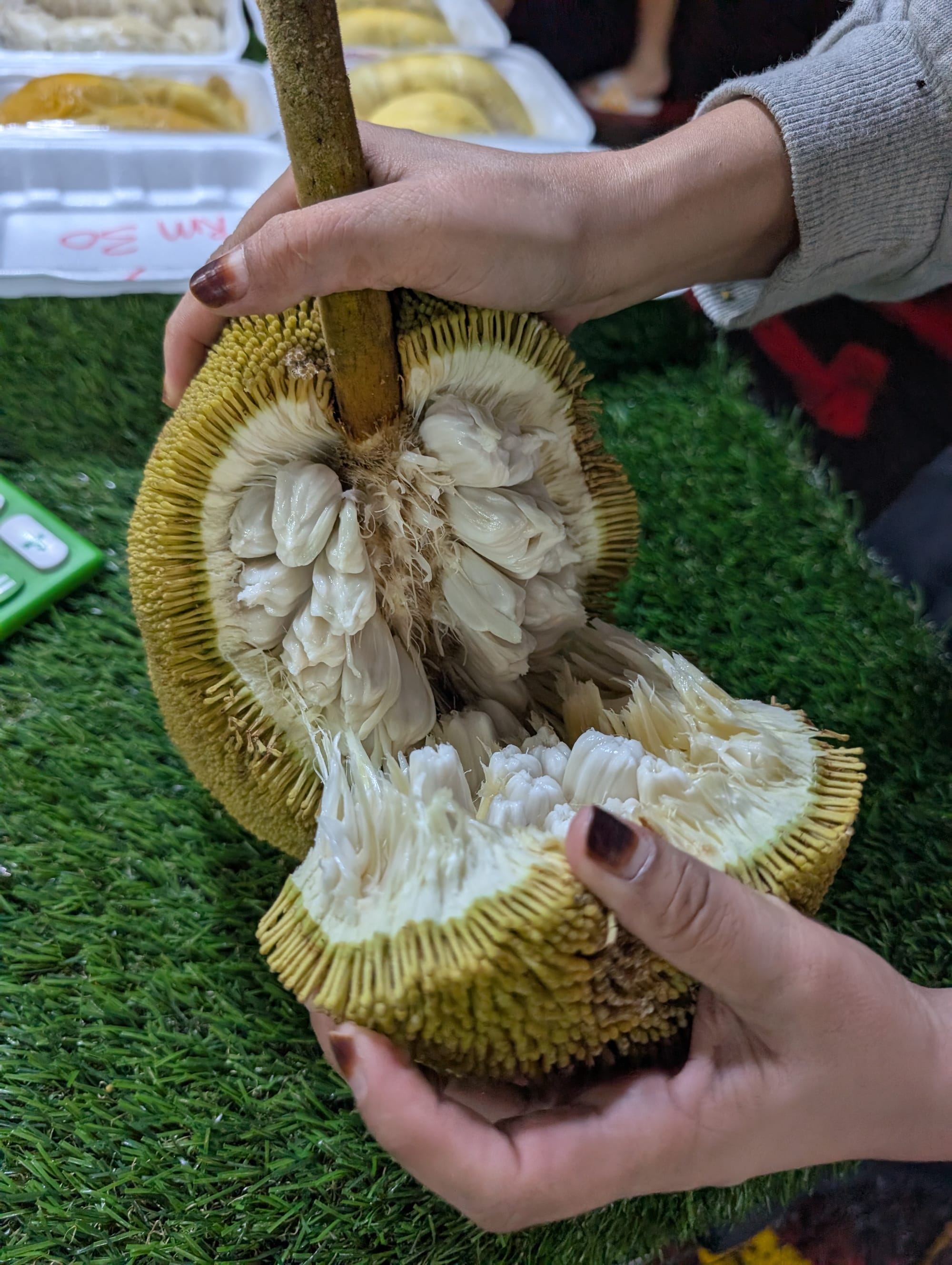 ドリアンのような実の内壁がないので、同じ重さのドリアンより可食部がかなり多いので要注意だ。