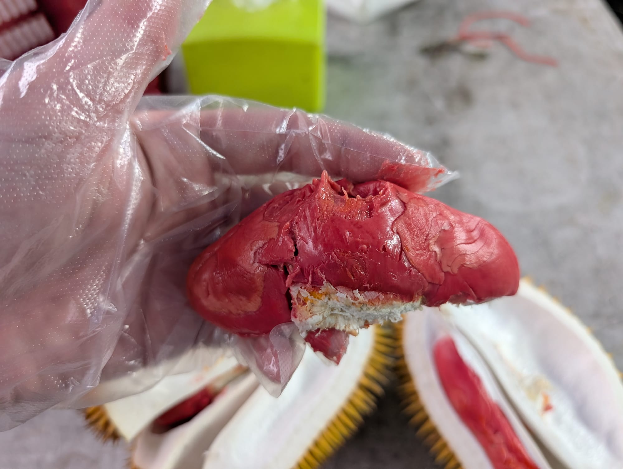 前に純粋な赤色Durio graveolensを食べたが、これは味が違うではないかと。